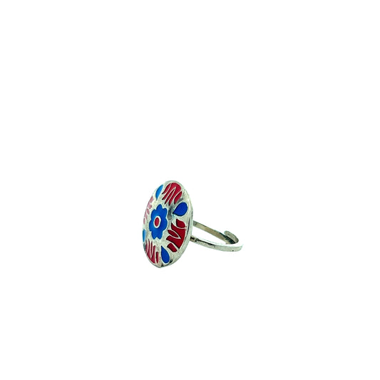 Floral Meenakari Silver Ring