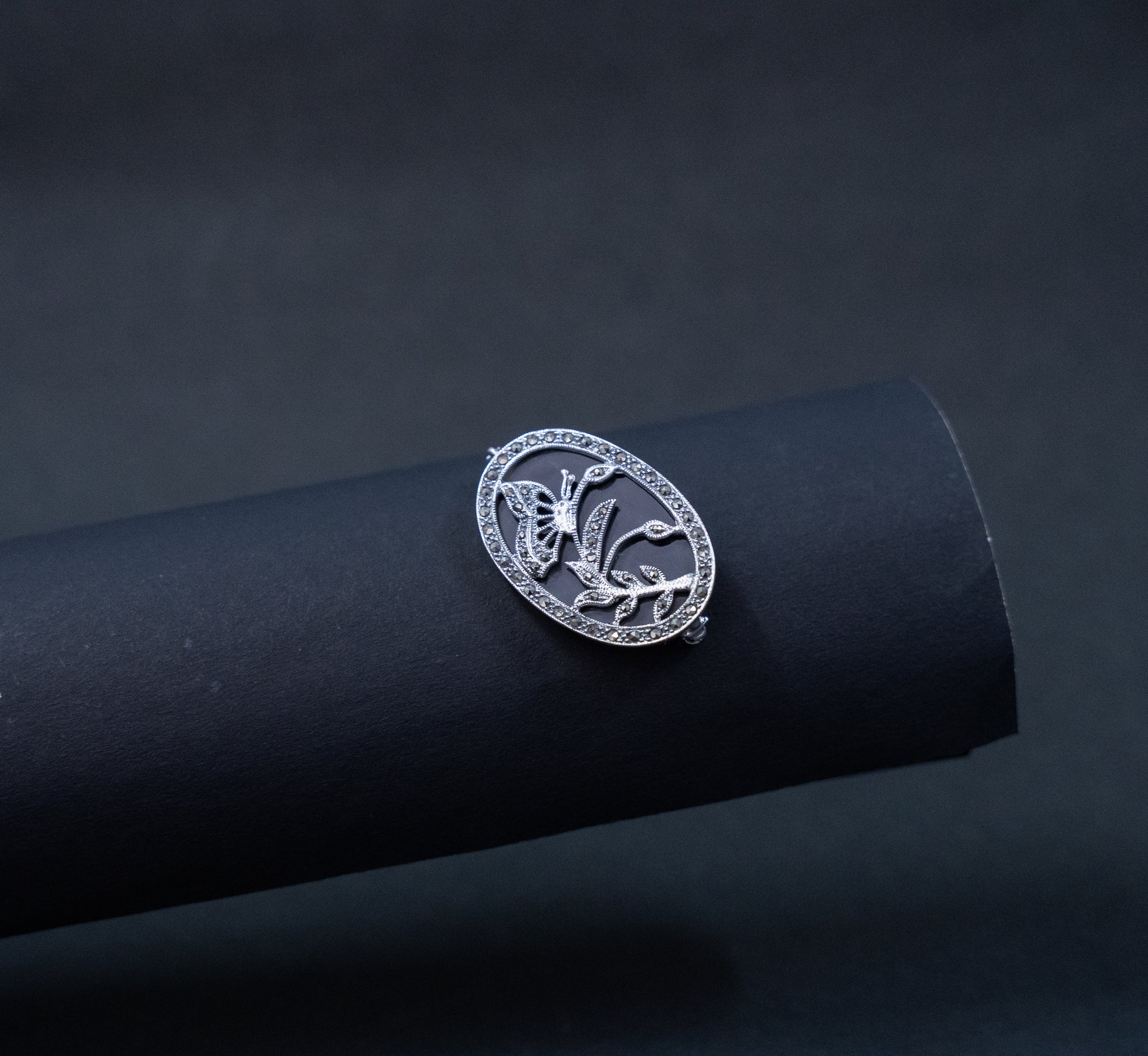 This Butterfly & Floral Sterling Silver Brooch is expertly crafted from high quality sterling silver, featuring a beautiful butterfly and floral design. With intricate detailing and elegant craftsmanship, this brooch is the perfect accessory to add a touch of sophistication to any outfit.