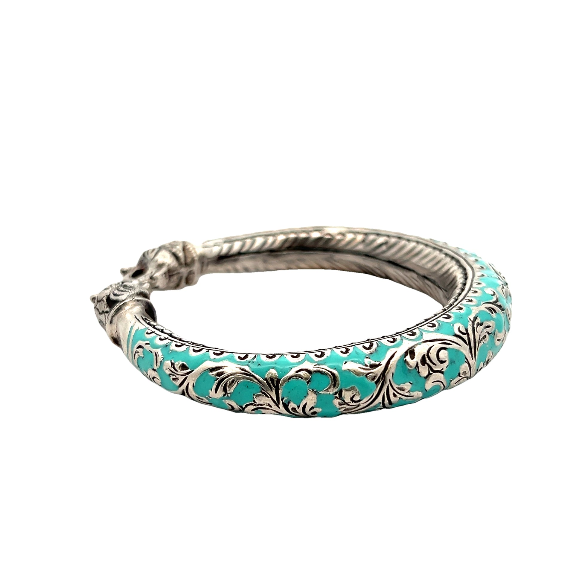 Elegant Sea Green Enamel Silver Bracelet a unique and elegant look, combining tradition with a fresh color palette. Mandalas that reflect the Navratri theme of energy, devotion, and festivity.