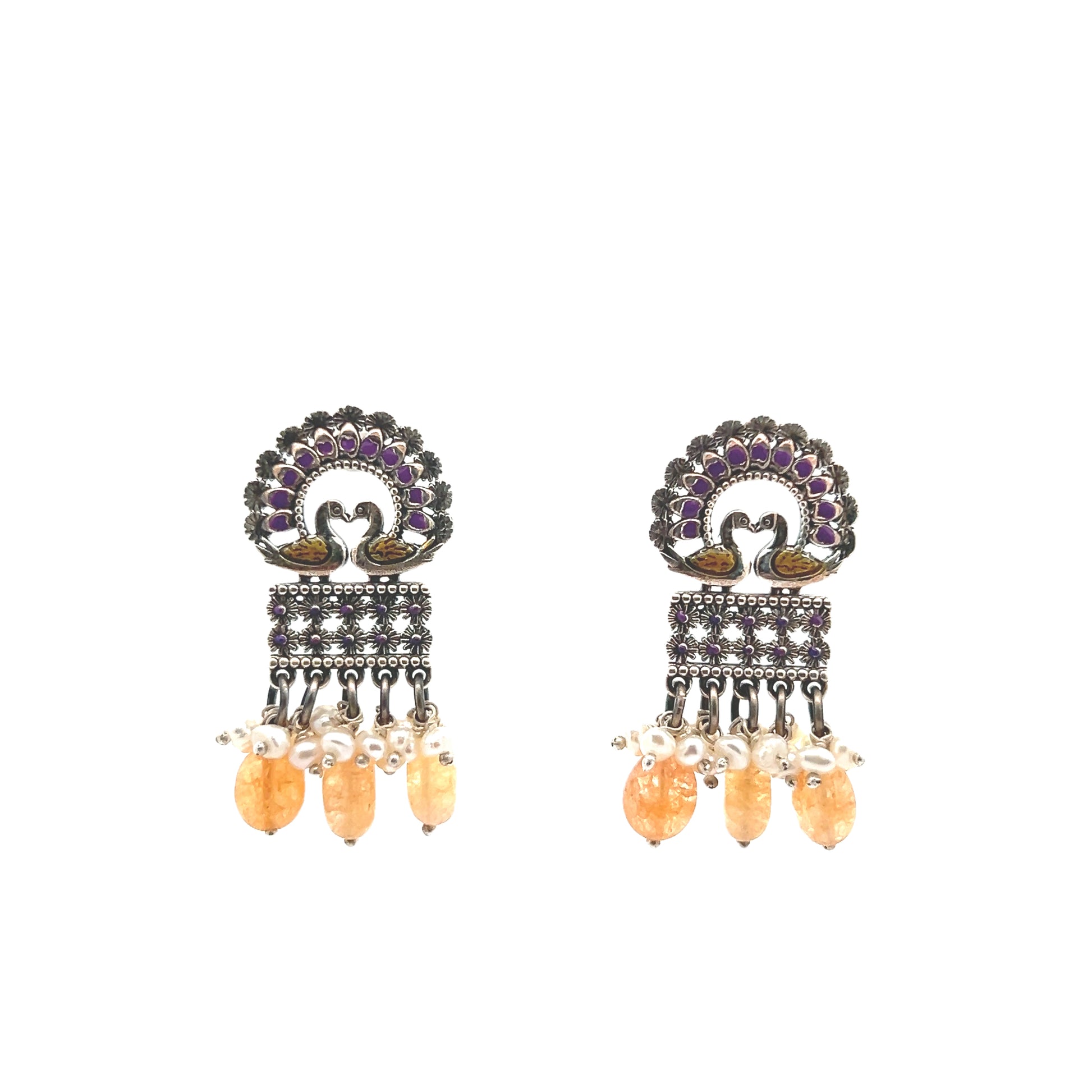 Peacock Meenakari Silver Earrings
