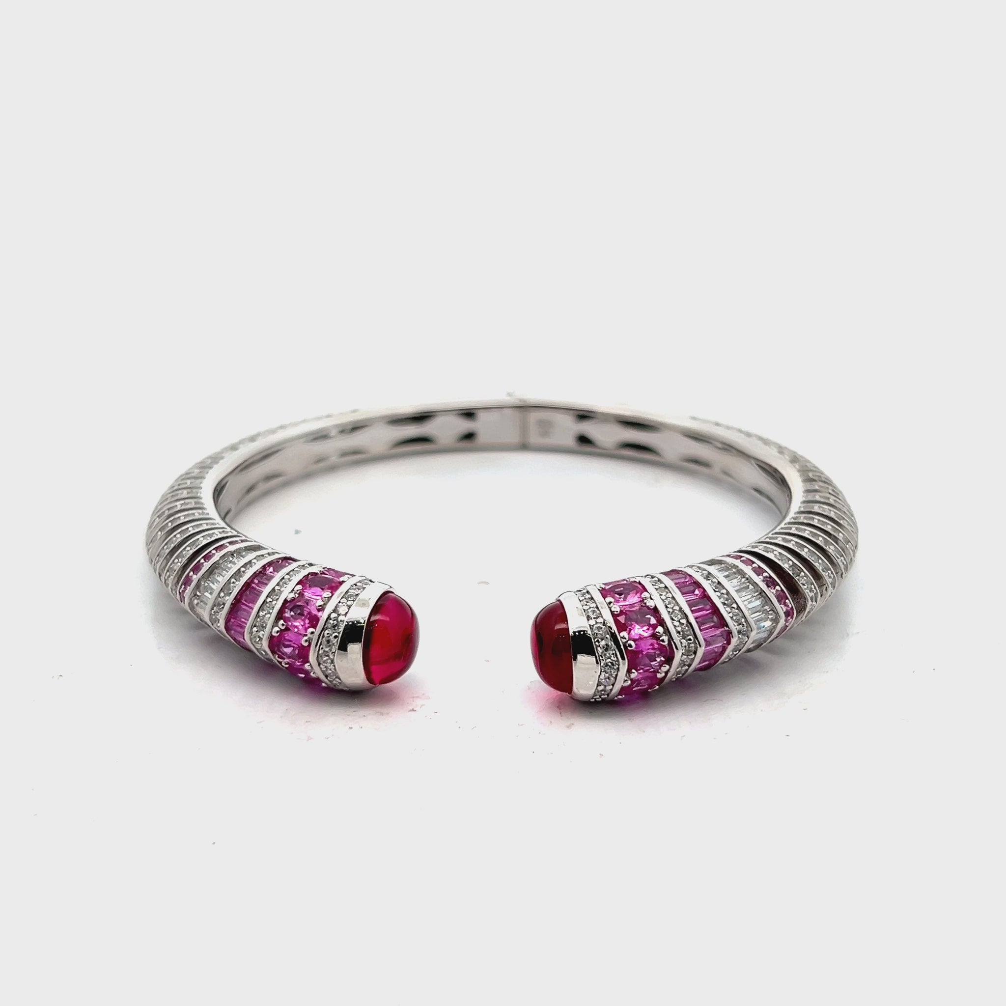 Pink CZ (Cubic Zirconia) Silver Bracelet is an elegant piece of jewelry featuring sparkling pink cubic zirconia stones, set in sterling silver. This bracelet has modern design, with each stone carefully cut to resemble diamonds, offering brilliance and clarity. The silver setting adds a luxurious contrast to the vibrant pink stones, enhancing their color and shine.